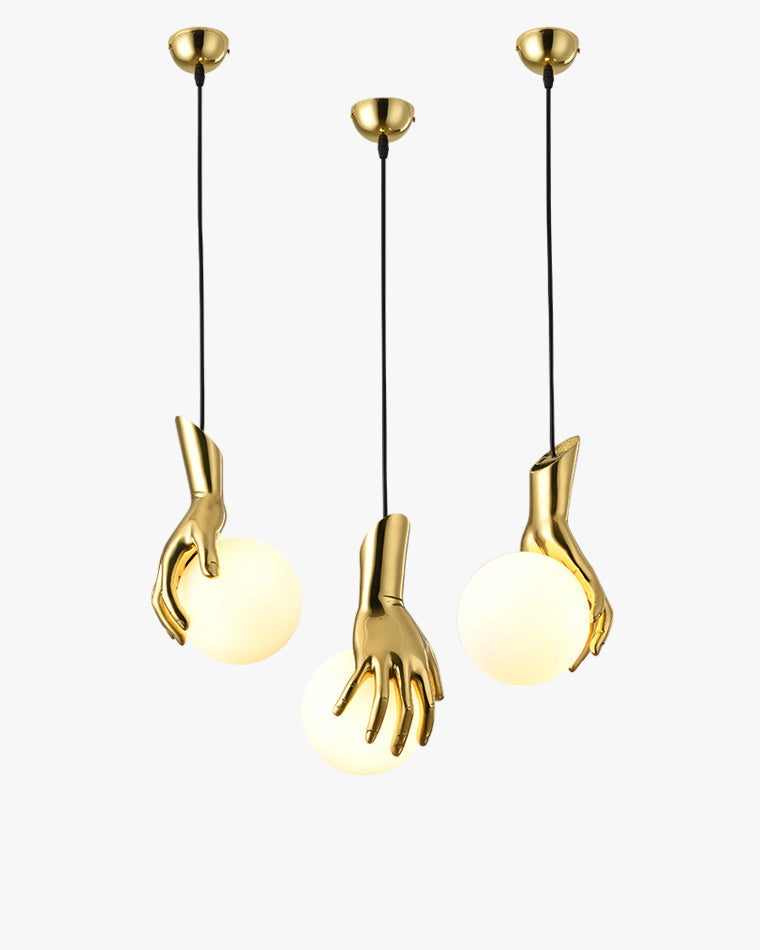 Hand Holding Globe Brass Pendant Light-WM2152