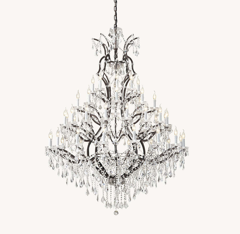 19TH C. ROCOCO IRON & CRYSTAL ROUND CHANDELIER 60"