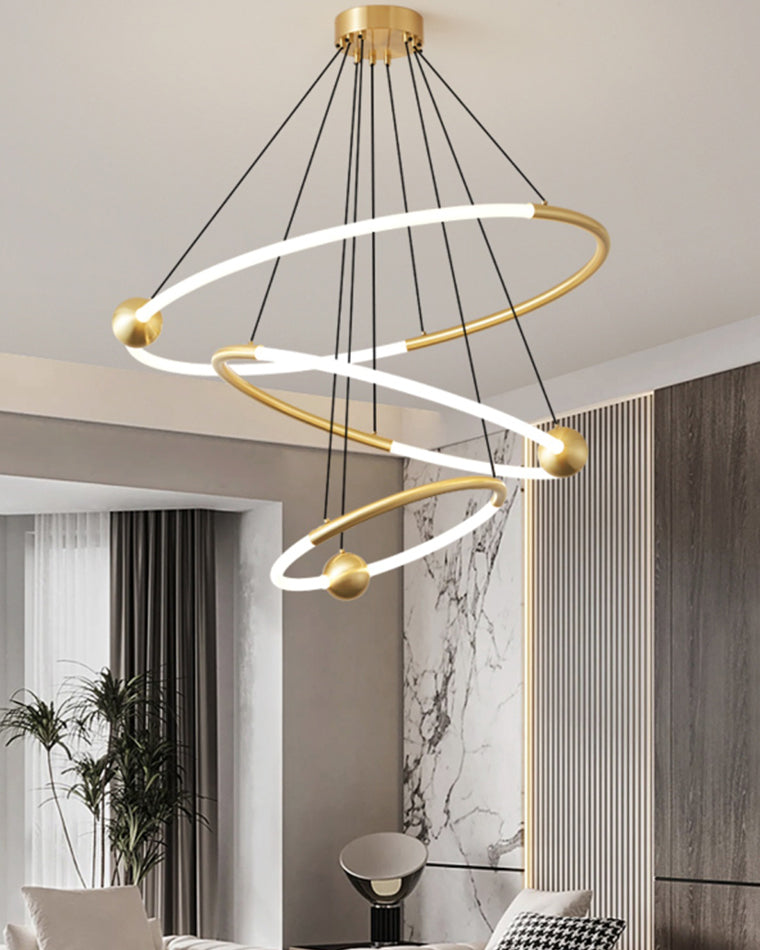 Tiered Circular Led Brass Chandelier-WM2342