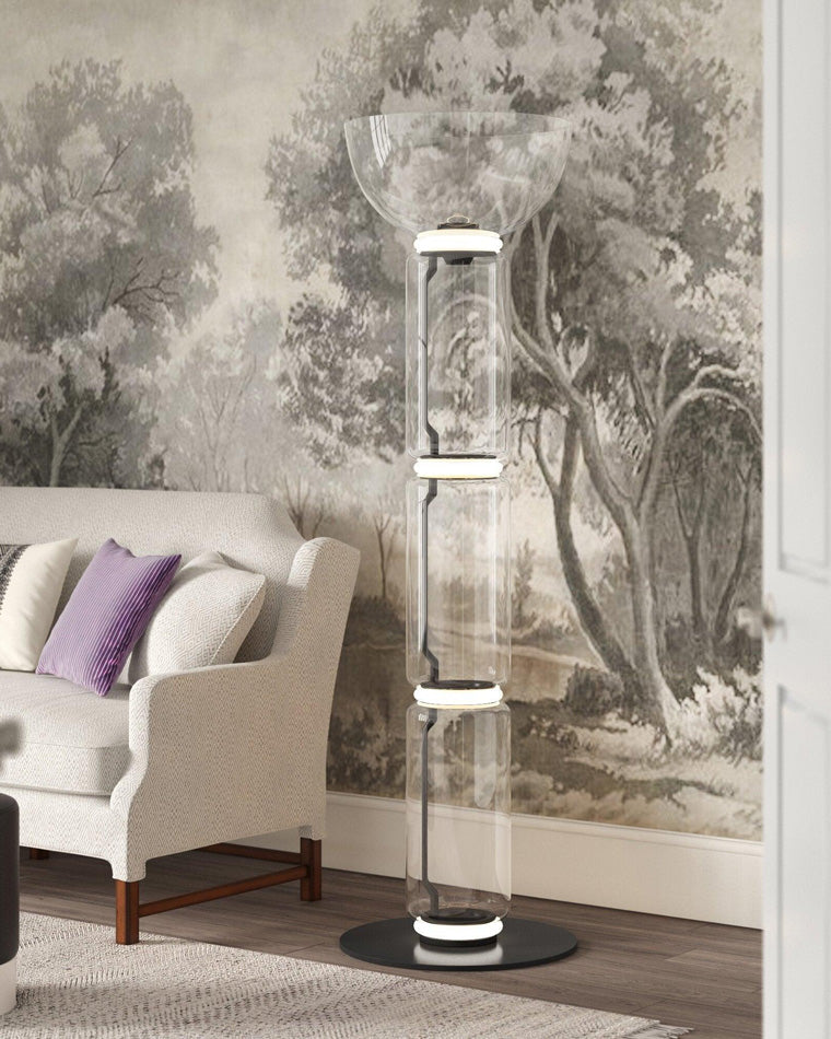 Glass Column Torchiere Floor Lamp-WM7018