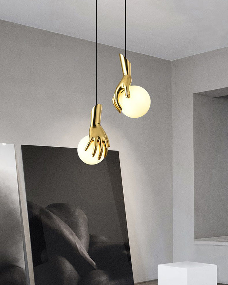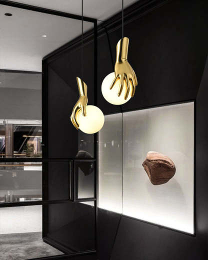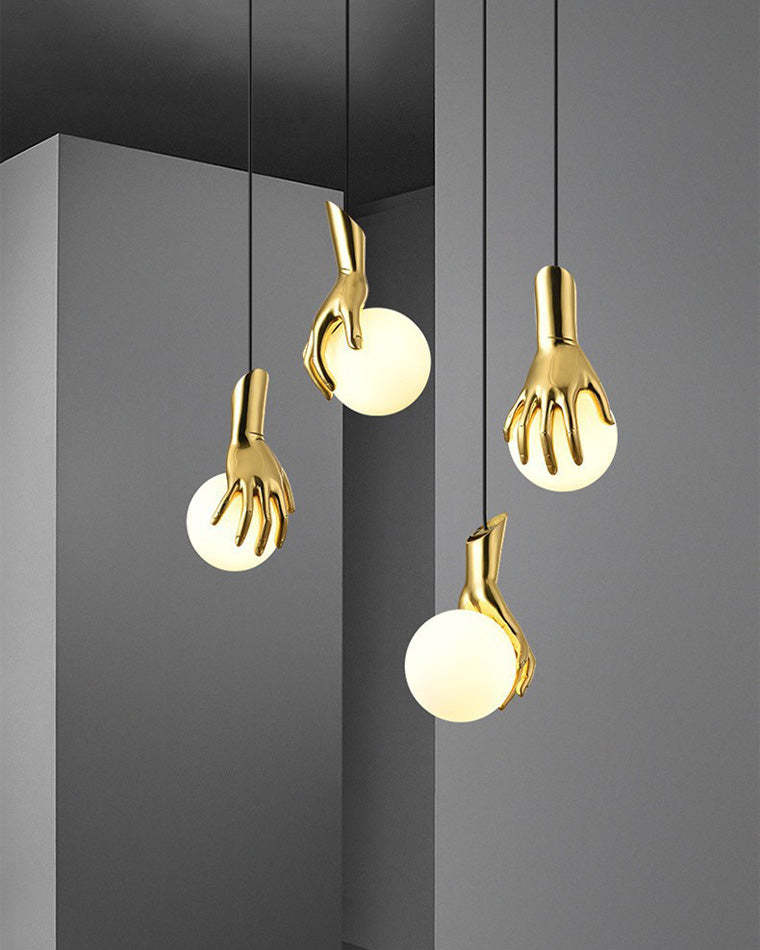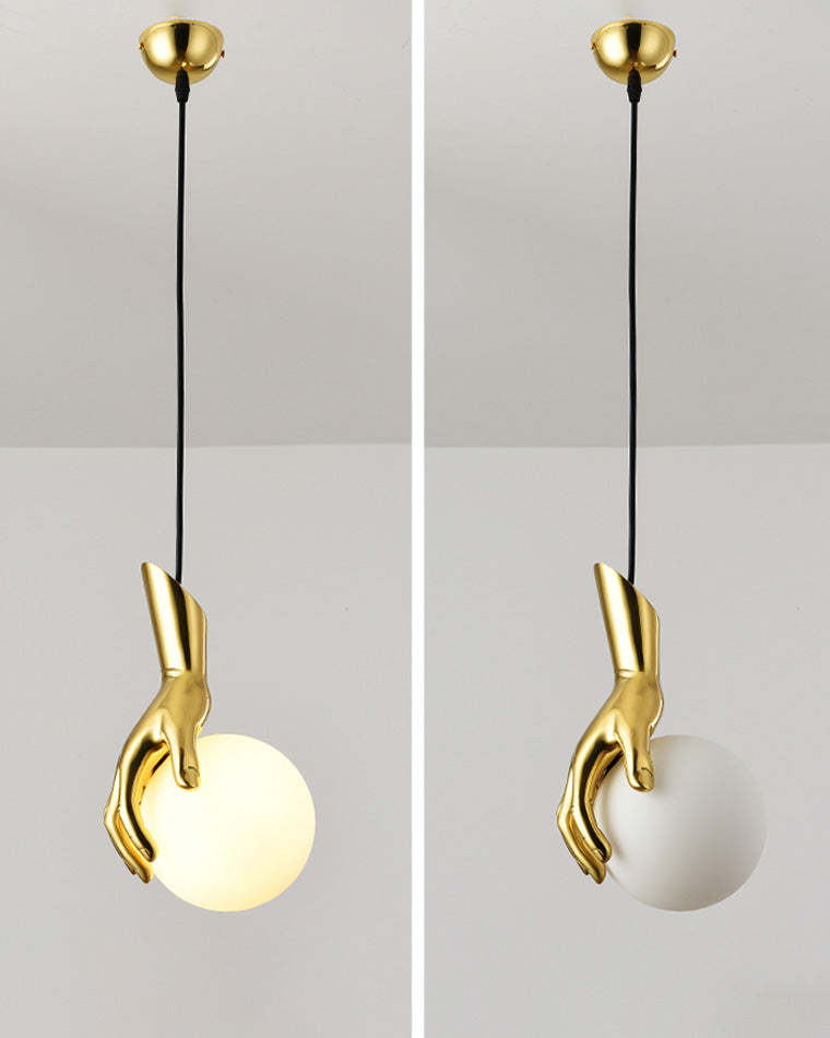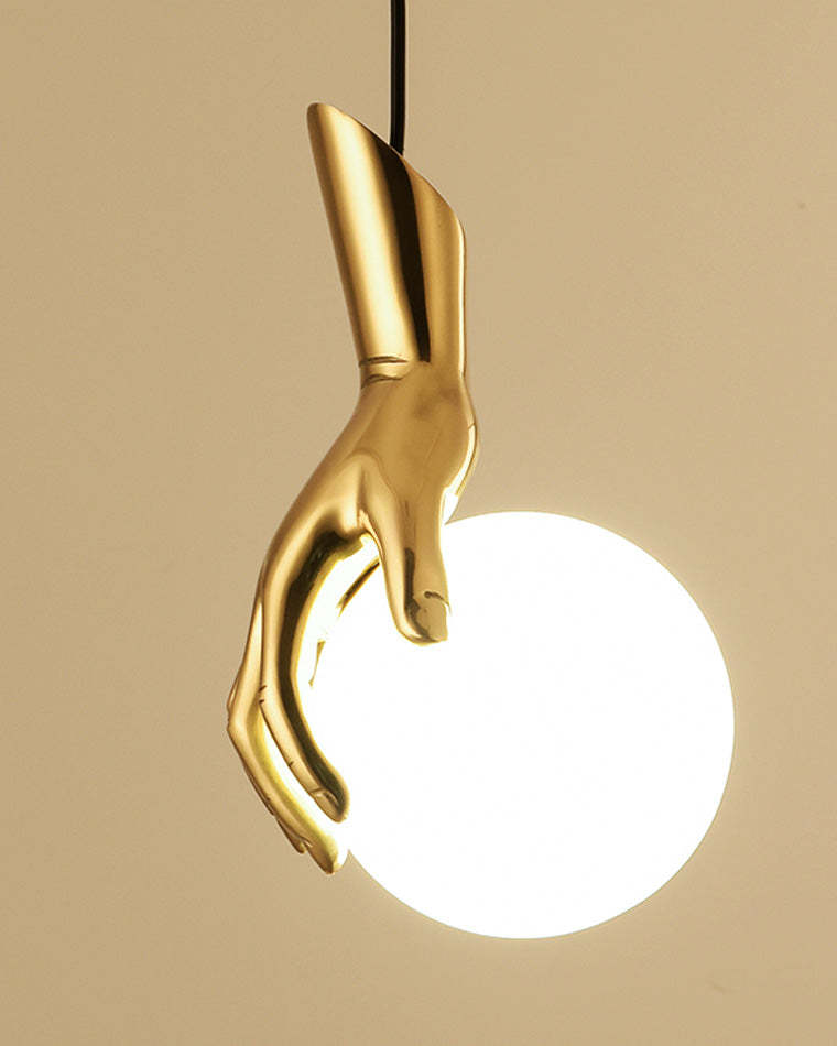 Hand Holding Globe Brass Pendant Light-WM2152
