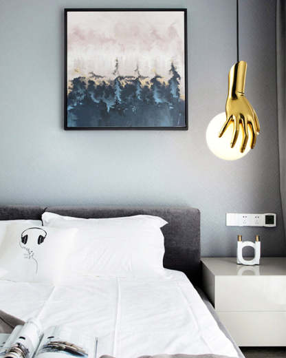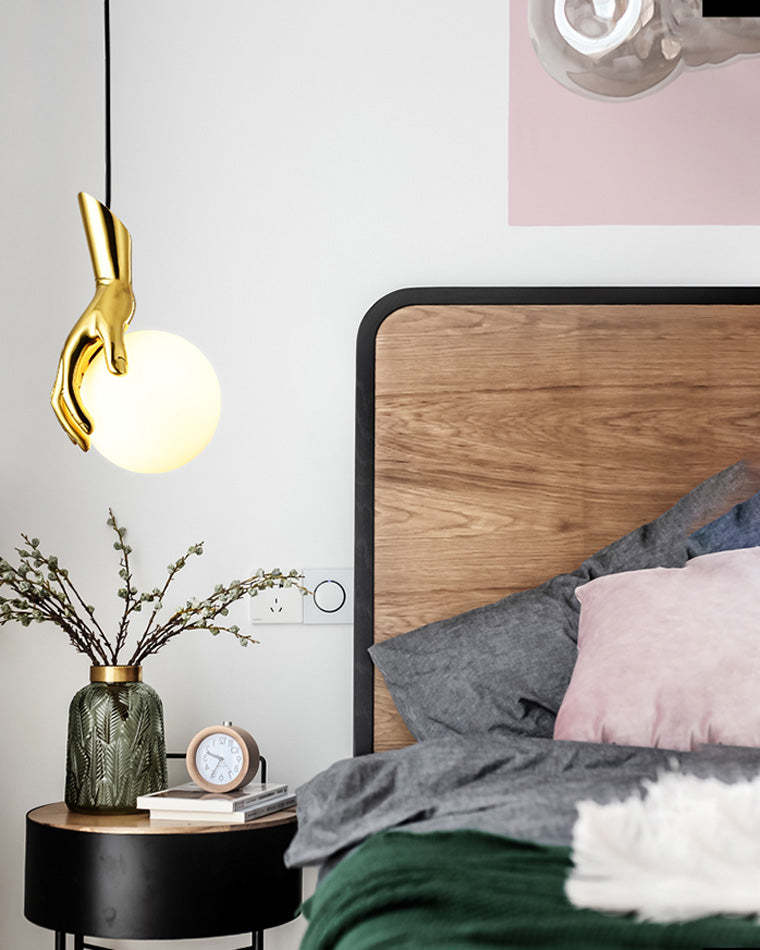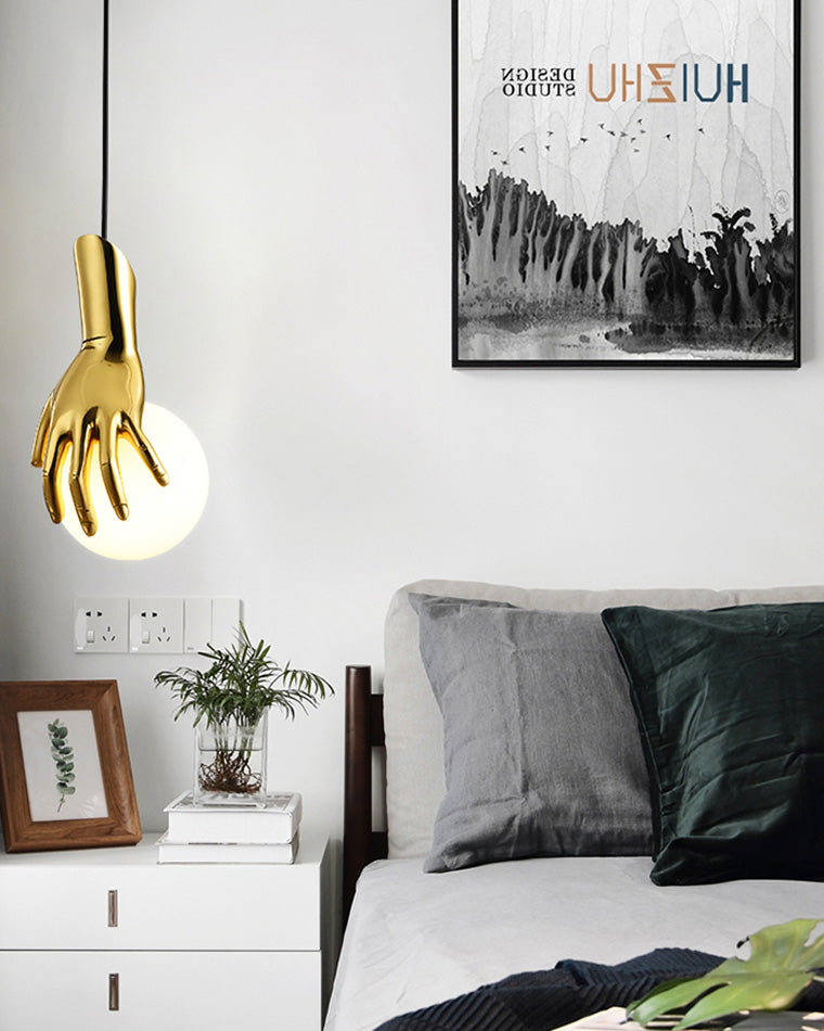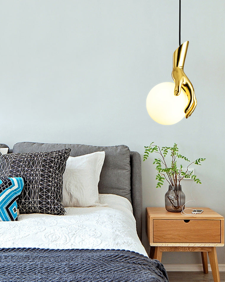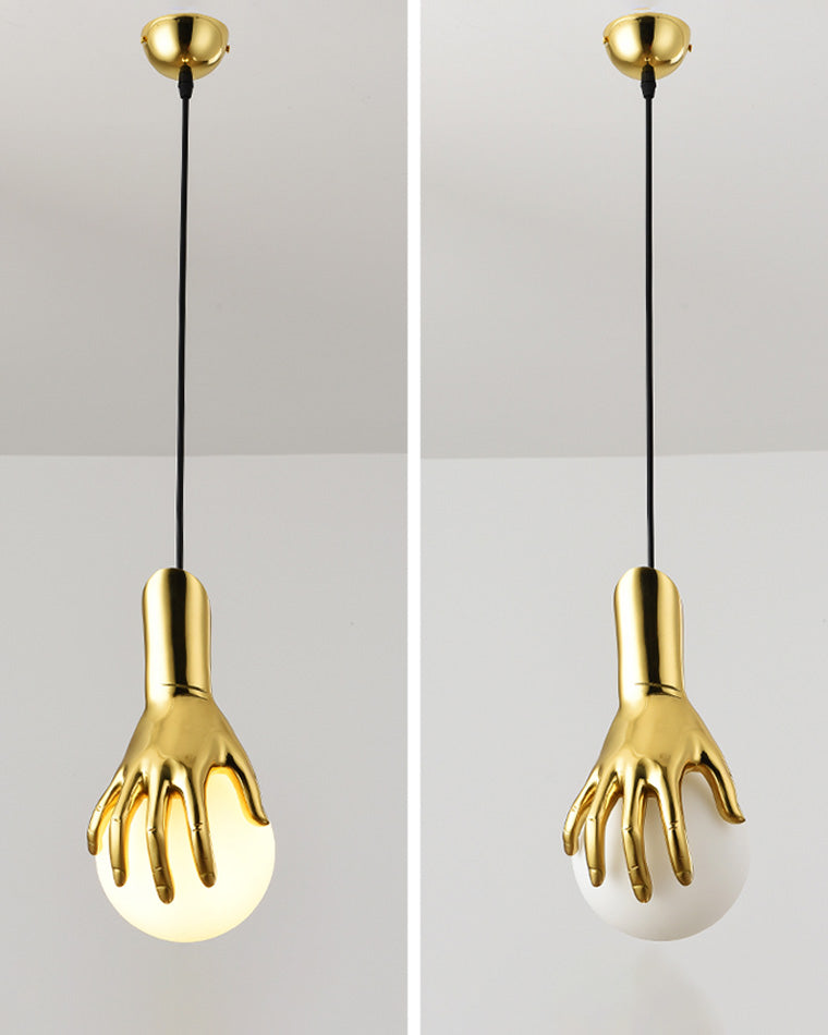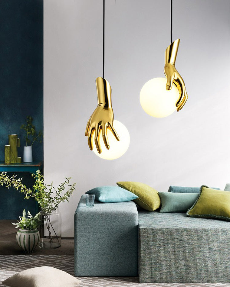 Hand Holding Globe Brass Pendant Light-WM2152