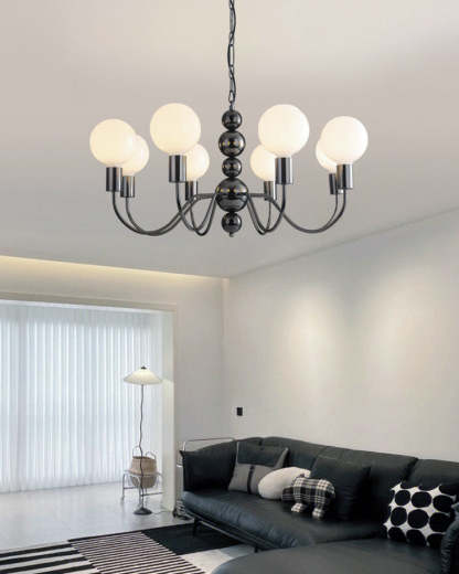 Glass Globe Black Arm Chandelier-WM2173
