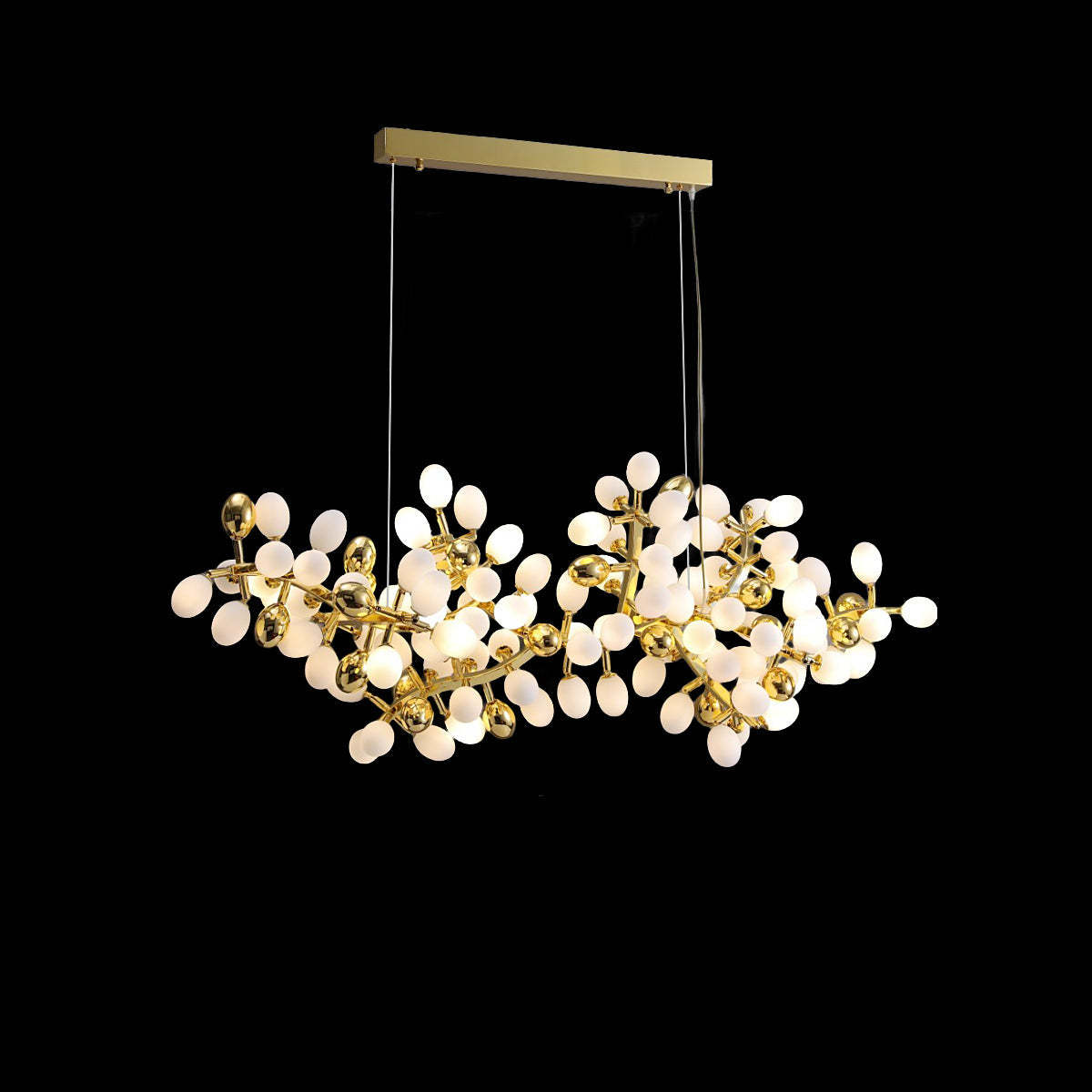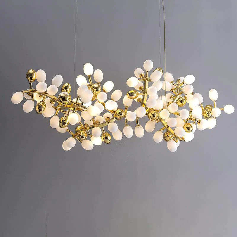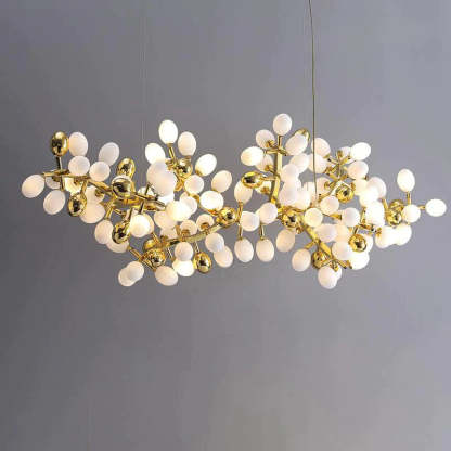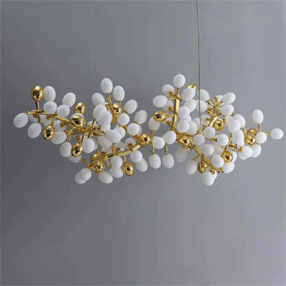 Post Modern Linear Grape Branch Chandelier Over Dining Table