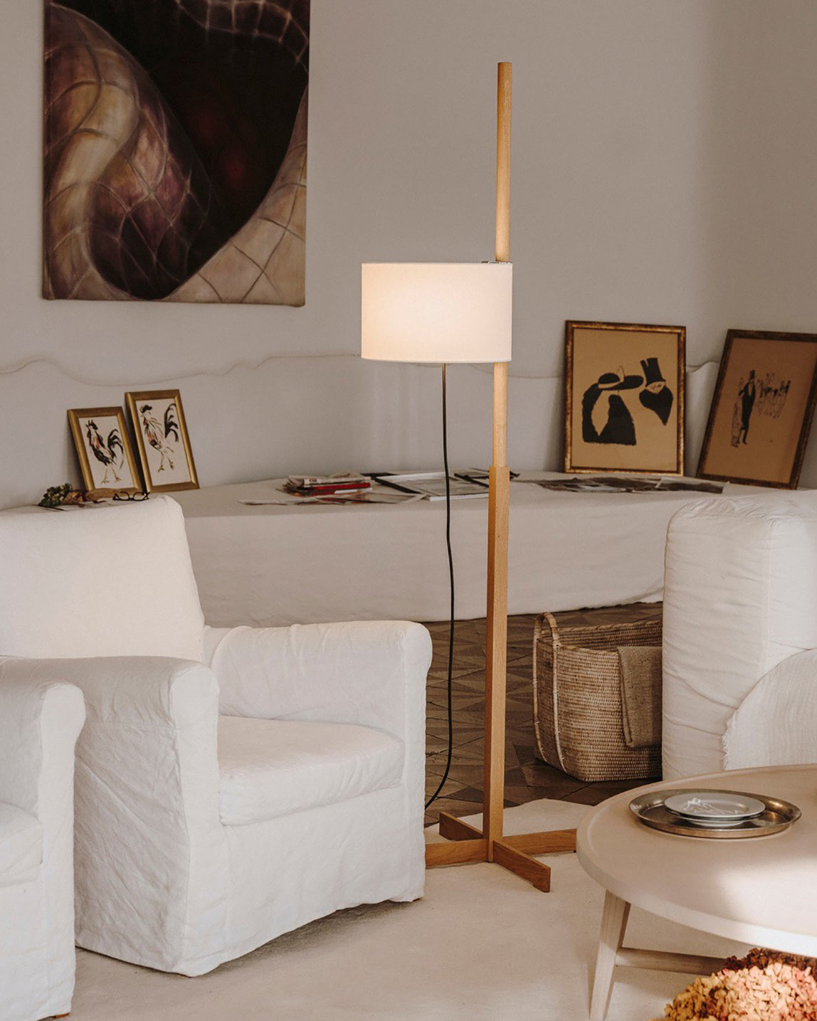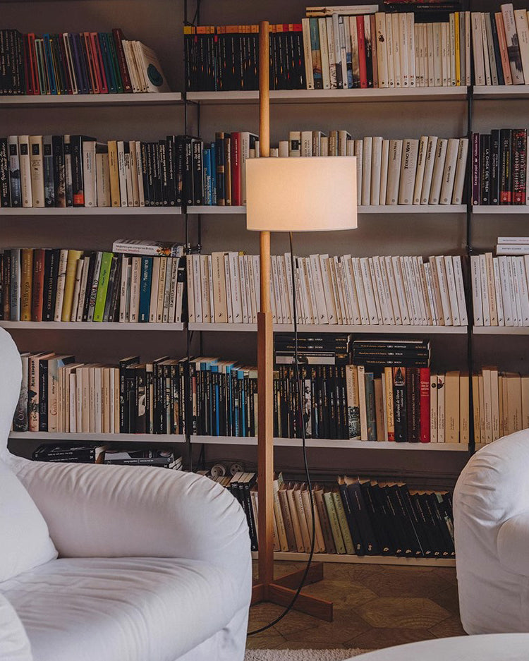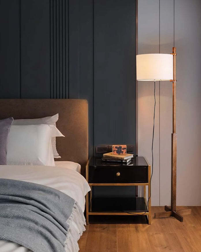 Wood Fabric Shaded Floor Lamp-WM7101